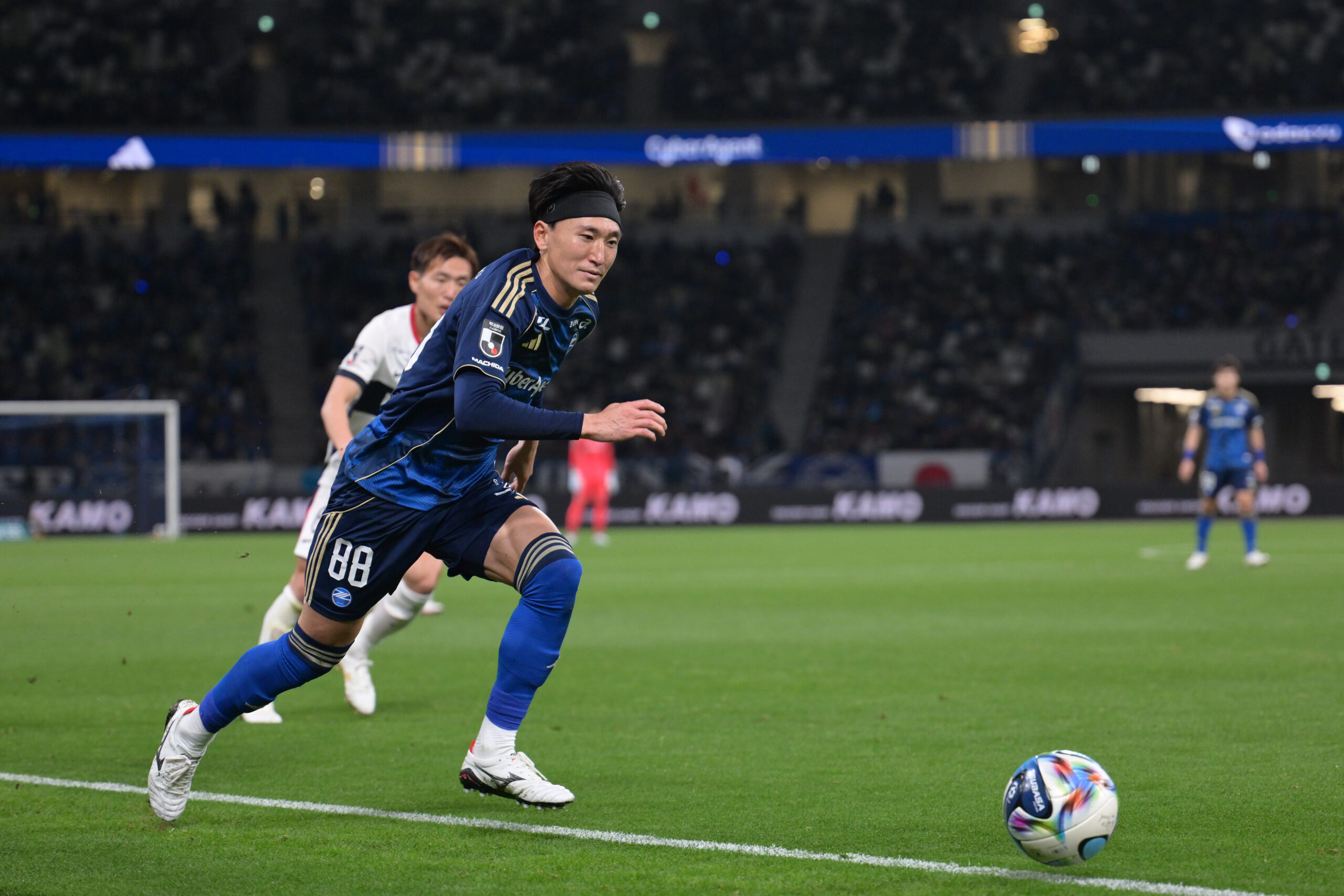 町田 左サイドから相馬がドリブルで前進。ペナルティエリア内まで持ち運んでクロスを供給するが、キムテヒョンにクリアされる
