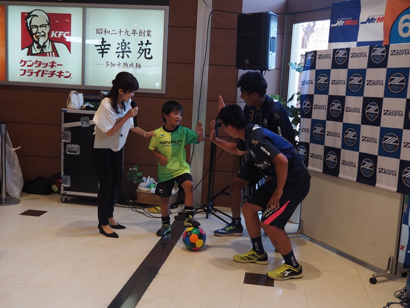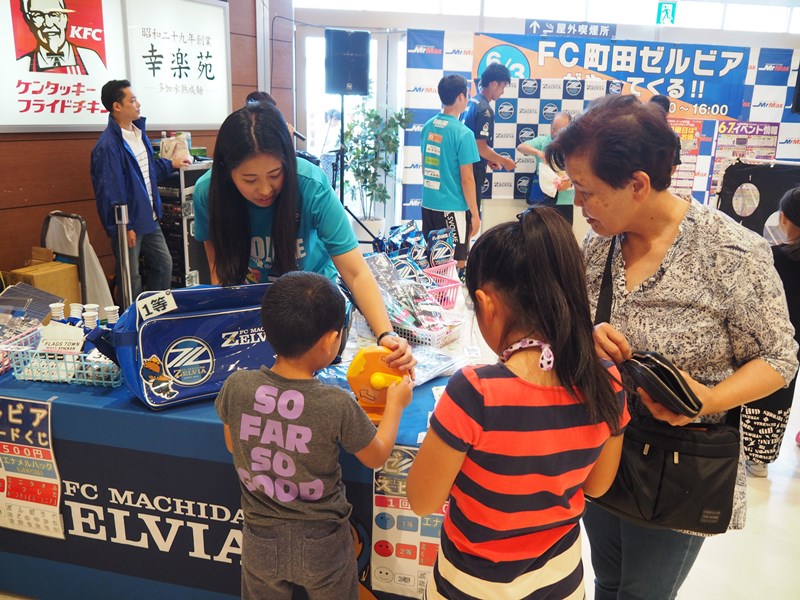 キックゲームやゼルビアグッズが当たるカラポンくじ引き、選手とのじゃんけん大会などを行い、多摩境地域にお住まいの方々にチームのPRを行いました。また多摩境地域のサポーター有志の皆さんやゼルビア後援会の皆さんにイベントのお手伝いを行っていただきました。