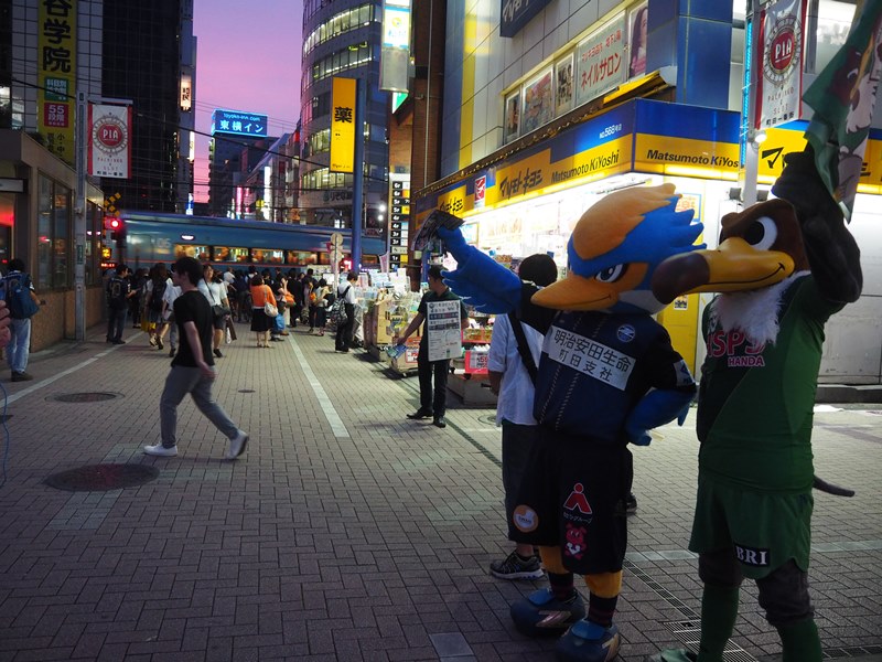 ゼルビーとヴェルディ君も積極的にチラシ配りに参加しました。チラシを受け取ってくださった皆様ありがとうございました。