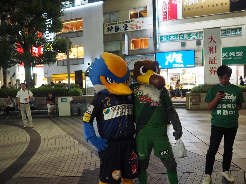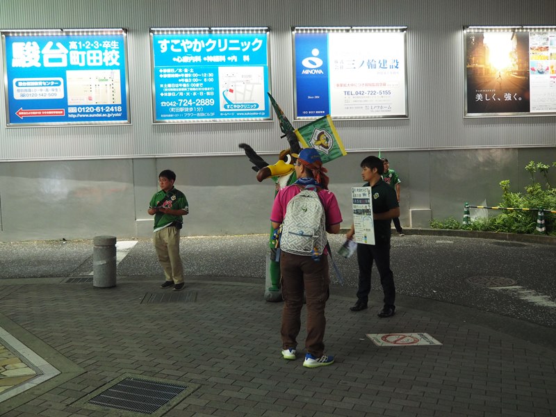 総勢約30人+2羽で午後7時00分から1時間、町田駅をご通行中の皆様に25日(日)のJ2第20節町田vs東京V(町田市陸上競技場)『東京クラシック』のPRを行いました。