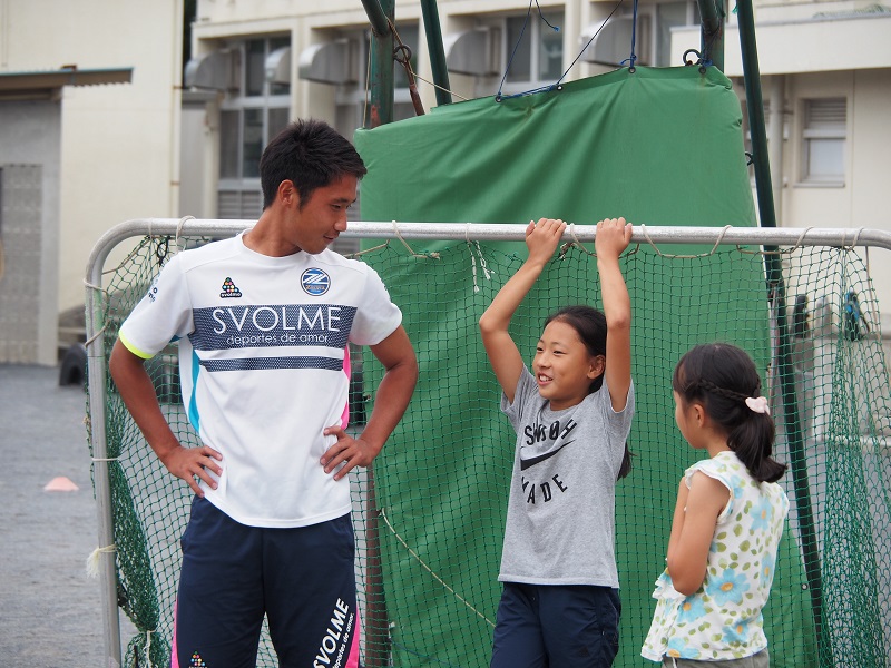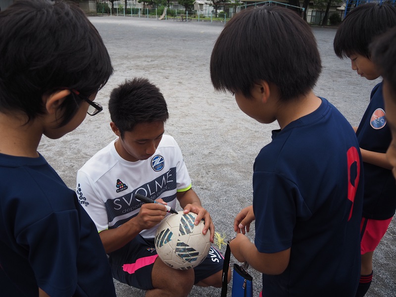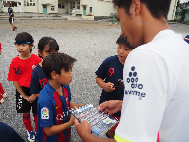 練習後には、選手からホームゲームのチケットと引換えができる地域感謝チケットの配布や写真撮影、サインなど交流しました。