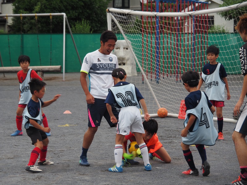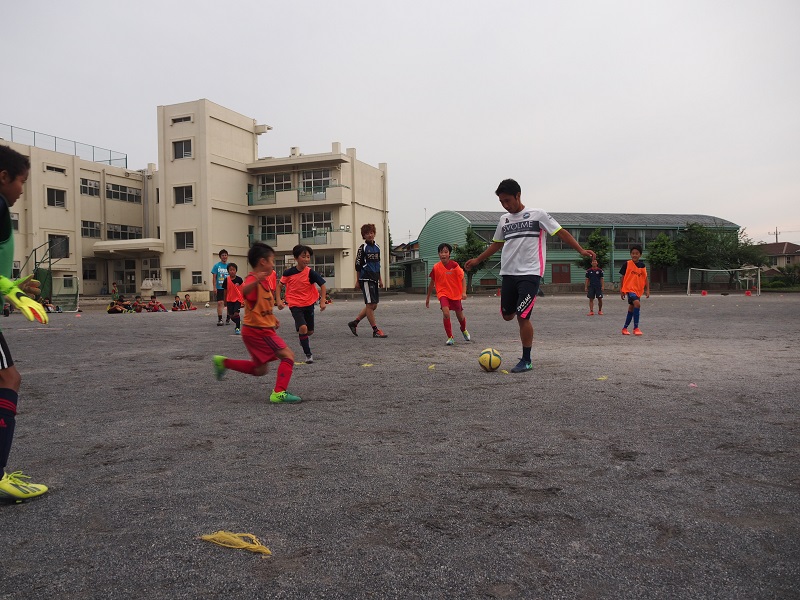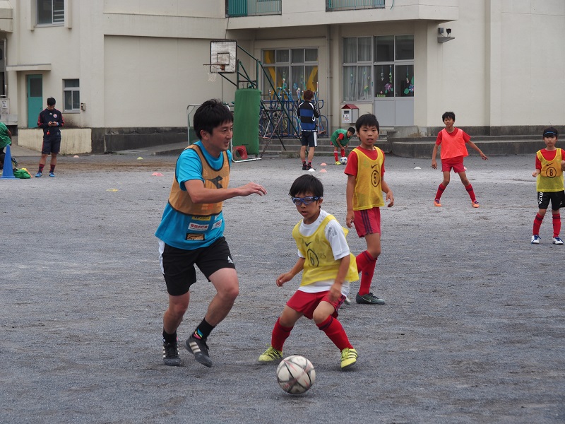 子どもたちは、果敢に選手からボールを取りに行ったり、ドリブルで仕掛けてみたりして、一生懸命にボールを追いかけていました。