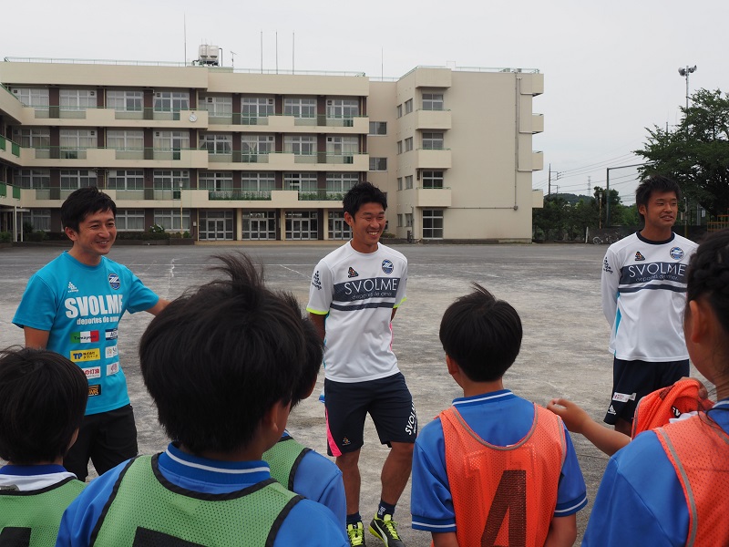 選手2名が登場すると「10番の土岐田選手だ!17番の遠藤選手がきた!」と子どもたちから温かく迎えていただきました。