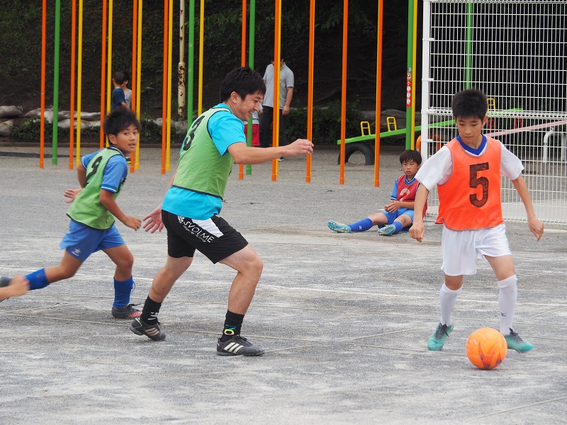 選手の自己紹介や星ホームタウン担当からのゼルビアの現状をお話しした後、早速、選手も子どもたちと混ざって試合を行いました。
