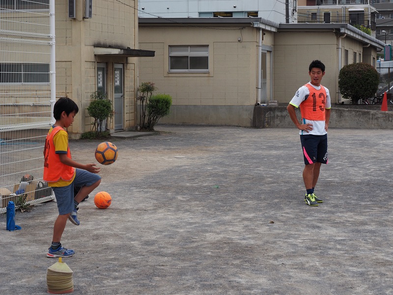 子どもたちは、果敢に選手からボールを取りに行ったり、ドリブルで仕掛けてみたりして、一生懸命にボールを追いかけていました。