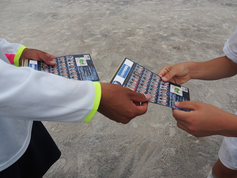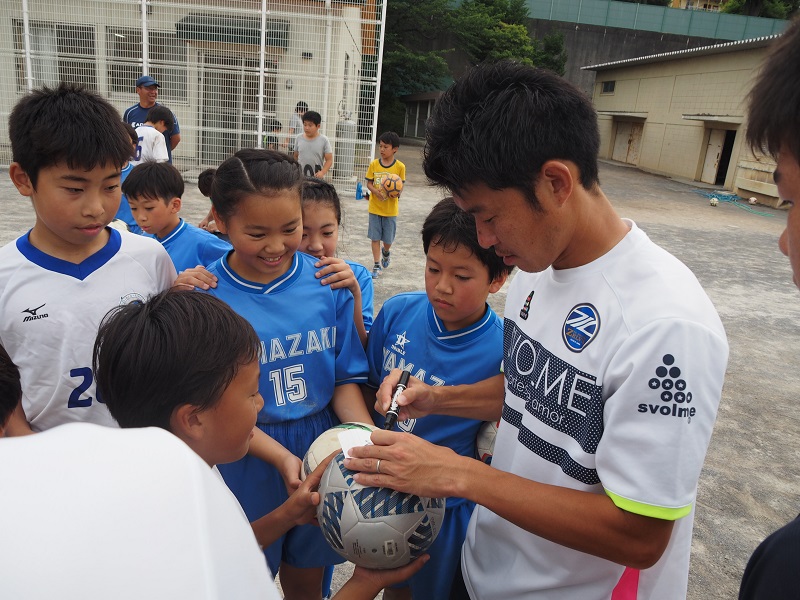 練習後には、選手からホームゲームのチケットと引換えができる地域感謝チケットの配布や写真撮影、サインなど交流しました。