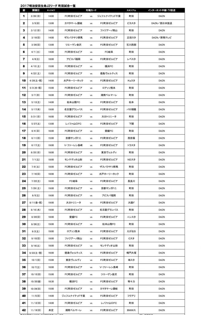 □『2017 明治安田生命J2リーグ』 試合日程