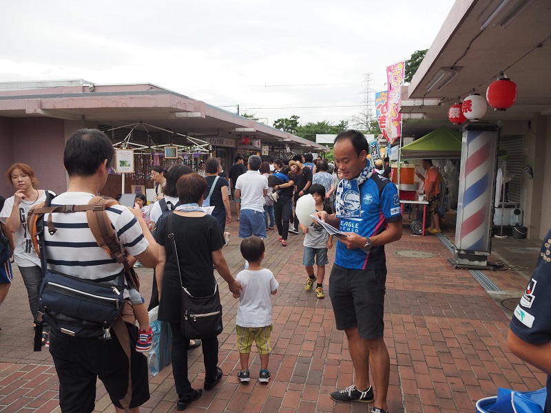 星大輔ホームタウン担当や後援会の皆さんと一緒に、7月29日の京都戦のチラシやうちわを配布しました。