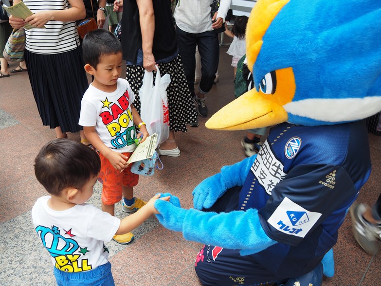 またうちわの配布や8月16日名古屋戦のチラシを配布しました。