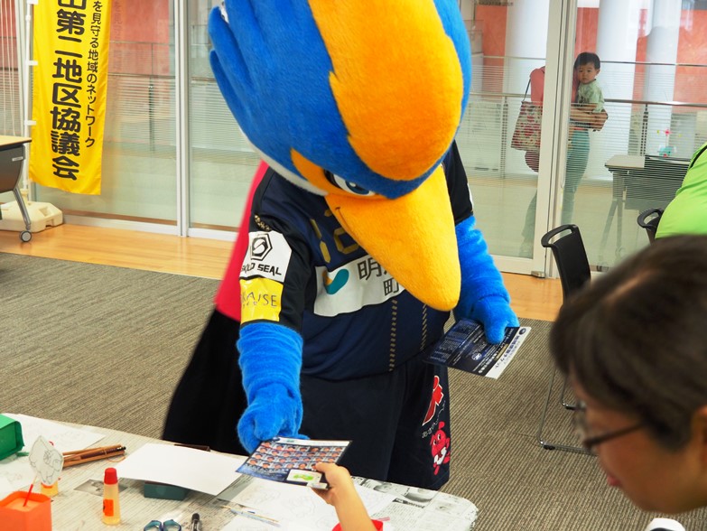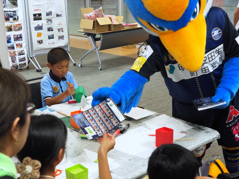 ゼルビーは、参加した子どもたちに地域感謝チケットを配布したり、写真撮影や握手など交流しました。
