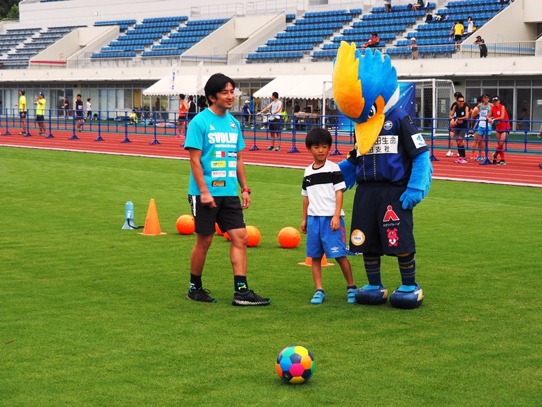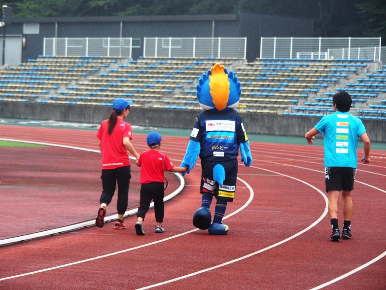 ゼルビーは親子ランに参加し、子どもたちと元気よく走りました。