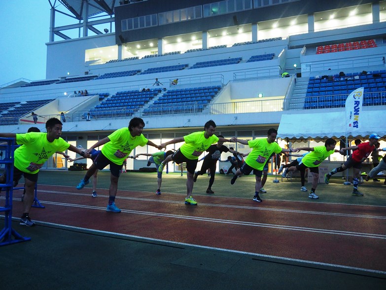 そんな記念すべき町田の第1回大会が、野津田公園内の町田市立陸上競技場で行われるということもあり、マスコットのゼルビーが、FC町田ゼルビアOBを引き連れて、ナイトリレーマラソンに参加しました。