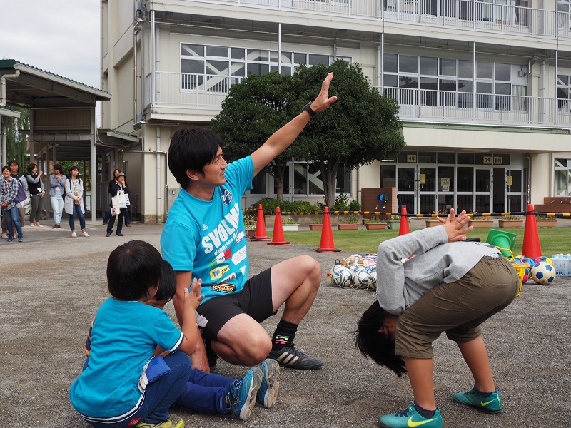 星大輔ホームタウン担当と高須雅也&庄司有佐&浅野翔吾スクールコーチが10月4日(水)、町田市立藤の台小学校で行われた『フレンドパーク 祝・藤の台小学校開校45周年』に参加し、サッカー教室を開催しました。