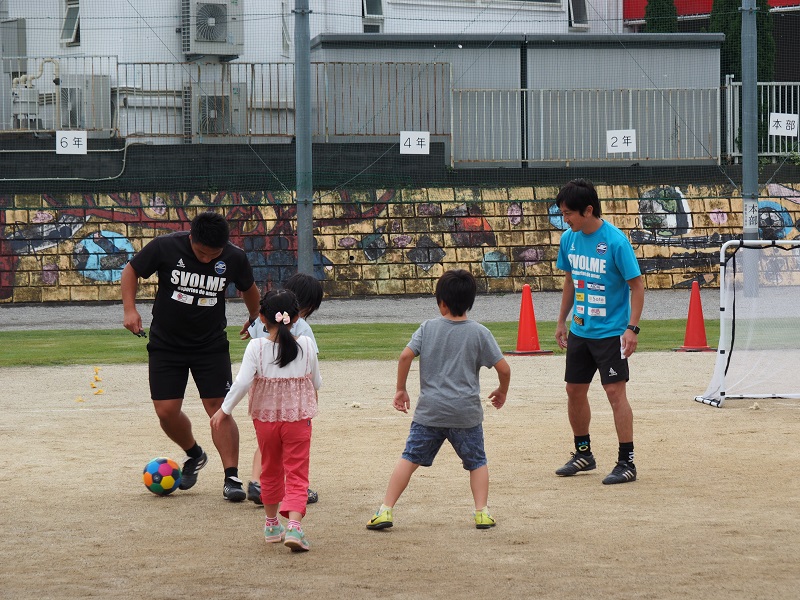 射的やスライム作り、ストラックアウトなど、様々な催し物がある中で、たくさんの子どもたちにサッカー教室へ参加いただきました。