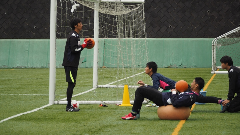 曇り空が広がり時折、雨がパラつく中でトレーニングを実施しました。この日はウォーミングアップを行った後に、体幹強化を実施しました。