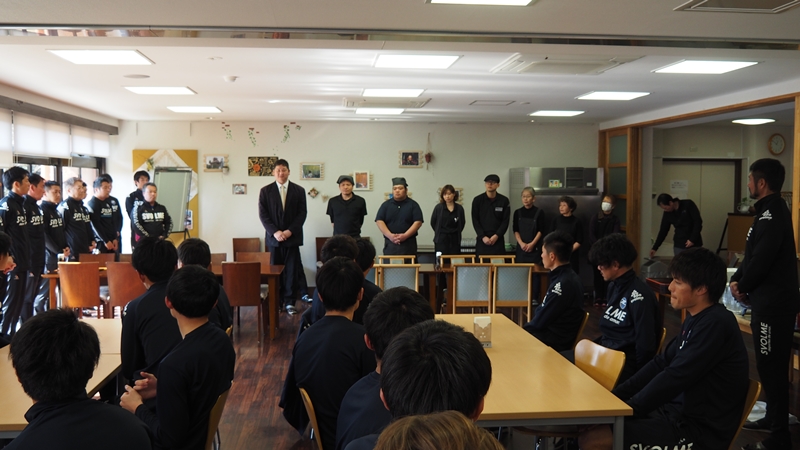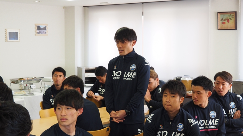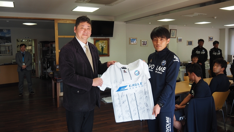 チームからは新選手会長の奥山政幸選手が「これから約2週間お世話になります。長いシーズンに向けて良い準備ができるようにトレーニングに励んでいきたいと思います。2週間よろしくお願い致します」と挨拶し、サイン入りユニフォームを贈呈しました。