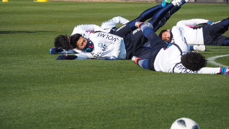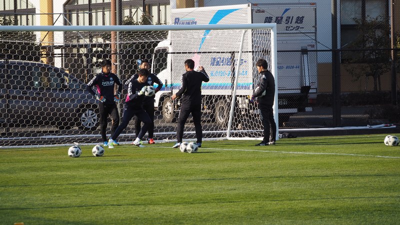 メニューの終盤にはミニゲーム形式も実施。深津康太選手らのベテランだけでなく、レギュラー奪取を狙う中堅の吉濱遼平選手も大声で指示を出すなど白熱した内容となりました。約1時間半の全体練習後もドリアン バブンスキー選手らFW陣が居残りでシュート練習をするなど各々が熱心にトレーニングを積みました。
