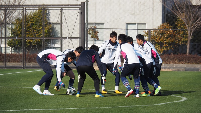 トレーニングは午後3時からスタート。当初は雨の予報もあったようですが、青空の中で行うことができました。初日ということで最初は軽めのメニューでしたが、徐々にトレーニング強度の高いメニューに移行。走るコースを変えながらパス&ゴーを繰り返すメニューでは、苦しい表情を浮かべながら走る選手もいました。