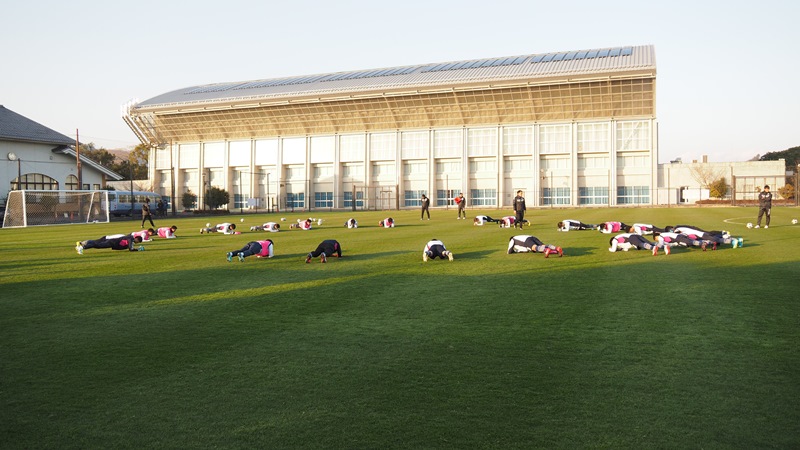 夕食後は約30分間のミーティングも実施。緊張感のある空気が流れる中、相馬監督の哲学が注入されていきました。あす30日(火)からは原則2部練習が組まれており、よりハードなメニューが待っています。宮崎・綾町では2月9日(金)までの約2週間、時にはトレーニングマッチも入れて組織力・実戦力を鍛えていきます。充実した環境で充実した時間を過ごし、チームの成長に繋げます。