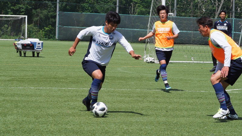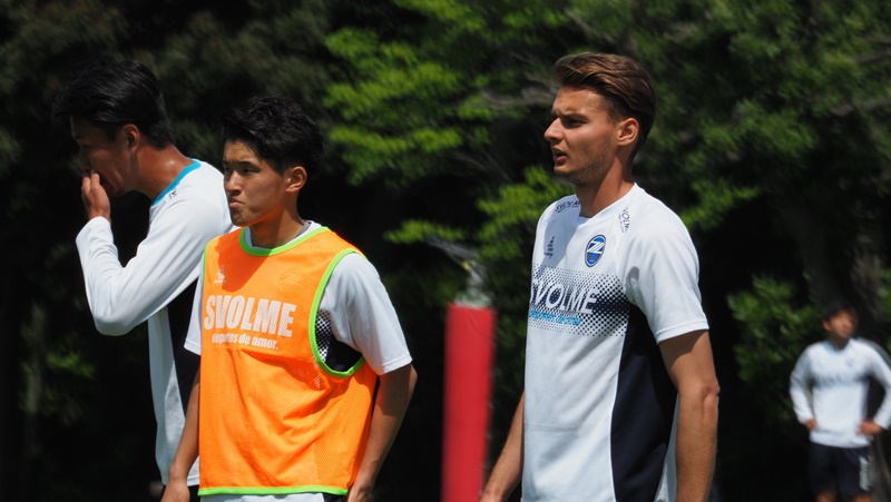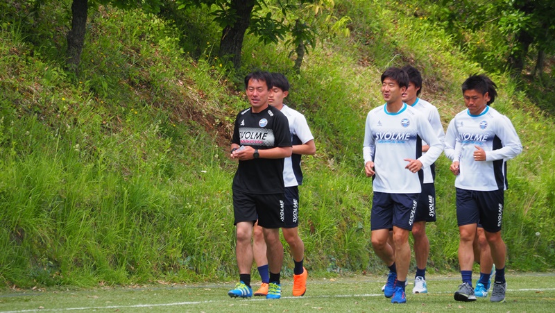 この日も相馬直樹監督が体調不良の為、村主博正ヘッドコーチが練習を指揮しました。リカバリー組とトレーニング組に分かれて開始。リカバリー組は、ジョギングやストレッチを中心にこなし、身体に溜まった乳酸を抜きました。トレーニング組はボールを使ったメニューを中心に実施し、最後には4対4のシュートゲームを敢行。球際の部分や体力が消耗してきた中での一つ一つのプレーの質を意識しながら取り組み、ホームでの横浜FC戦に向けて準備をしました。