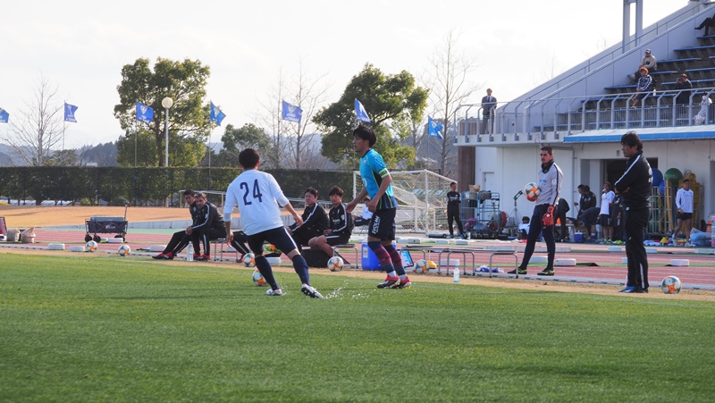 今キャンプ3試合目となるトレーニングマッチは同カテゴリーのアビスパ福岡と生目の杜運動公園にて開催しました。前日の夜よりこの日の朝まで雨が降り続いていましたが、お昼前には止み、太陽が顔を出し気温も17℃と暖かさを感じる中でのトレーニングマッチとなりました。