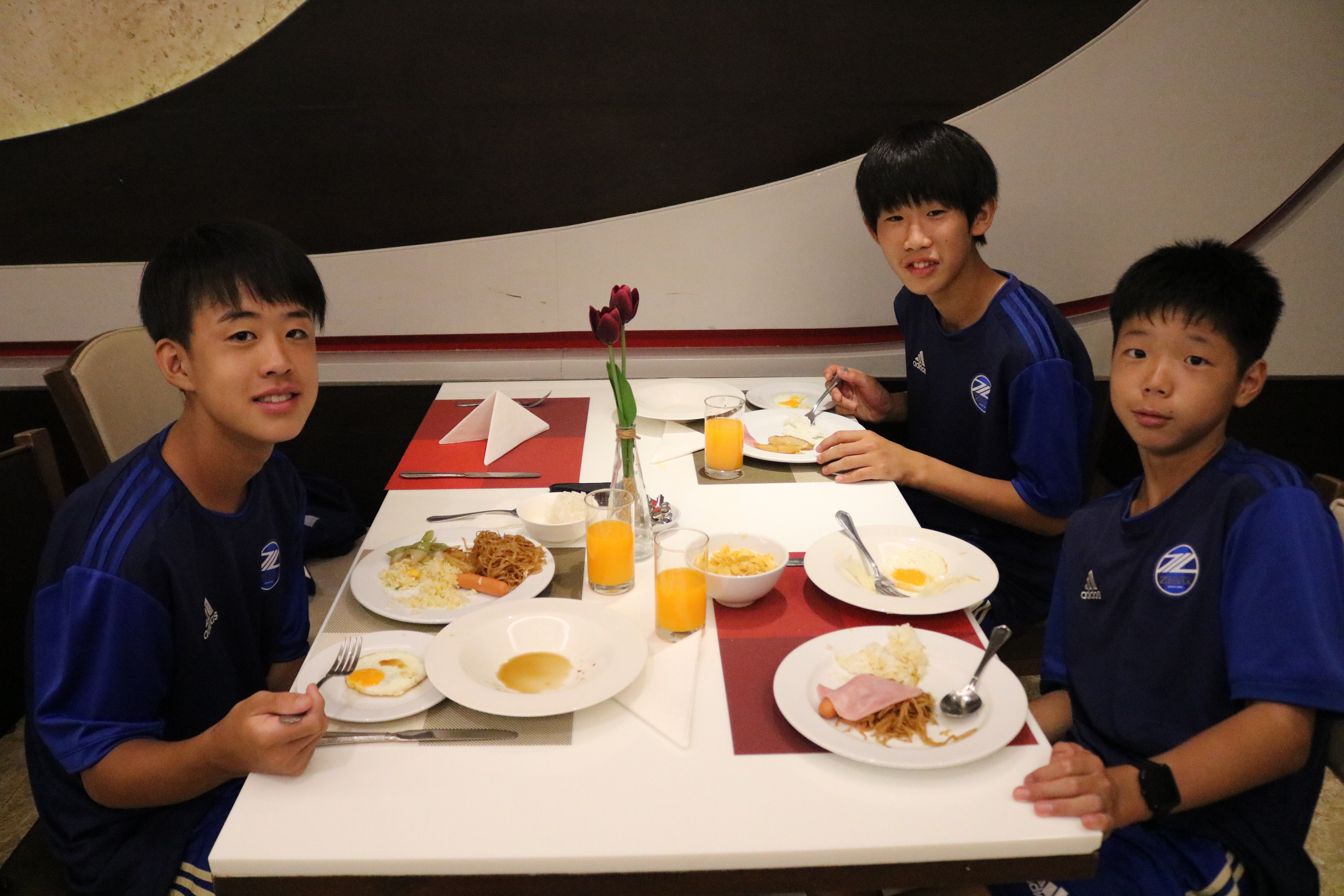 朝食後、試合に向けてミーティングを行い、試合会場に向かいました。