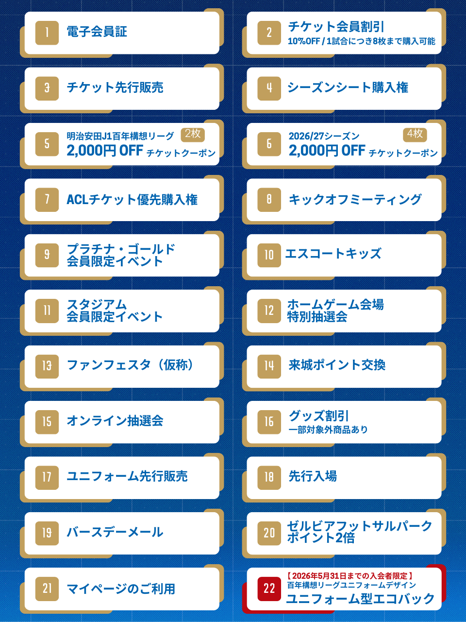 ※ゴールド会員(ライト)の入会数が上限に達し次第、百年構想リーグ+2026/27シーズンのゴールド会員の入会受付を終了とさせていただきます。