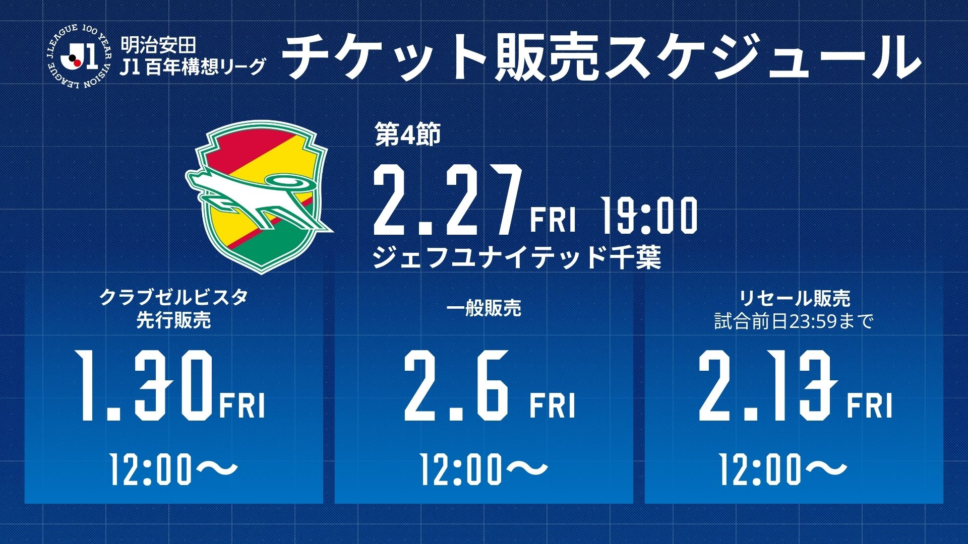 明治安田J1百年構想リーグ 第4節千葉戦のチケット販売販売についてご案内となります。