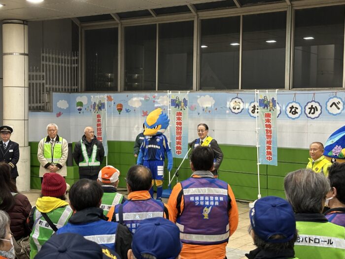 JR町田駅を中心とした繁華街の環境浄化や風紀保全のため、町田市と相模原市の合同による歳末特別警戒を実施しています。