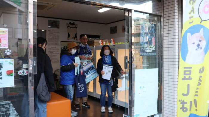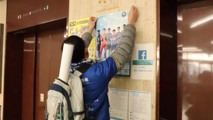 厳しい寒さが残るなか、クラブスタッフ、「青く染め隊」スタッフ、ファン・サポータが一丸となり、2/14(土)に迫ったホーム開幕戦の周知と、街中を青く染めるポスター掲出活動を行いました!