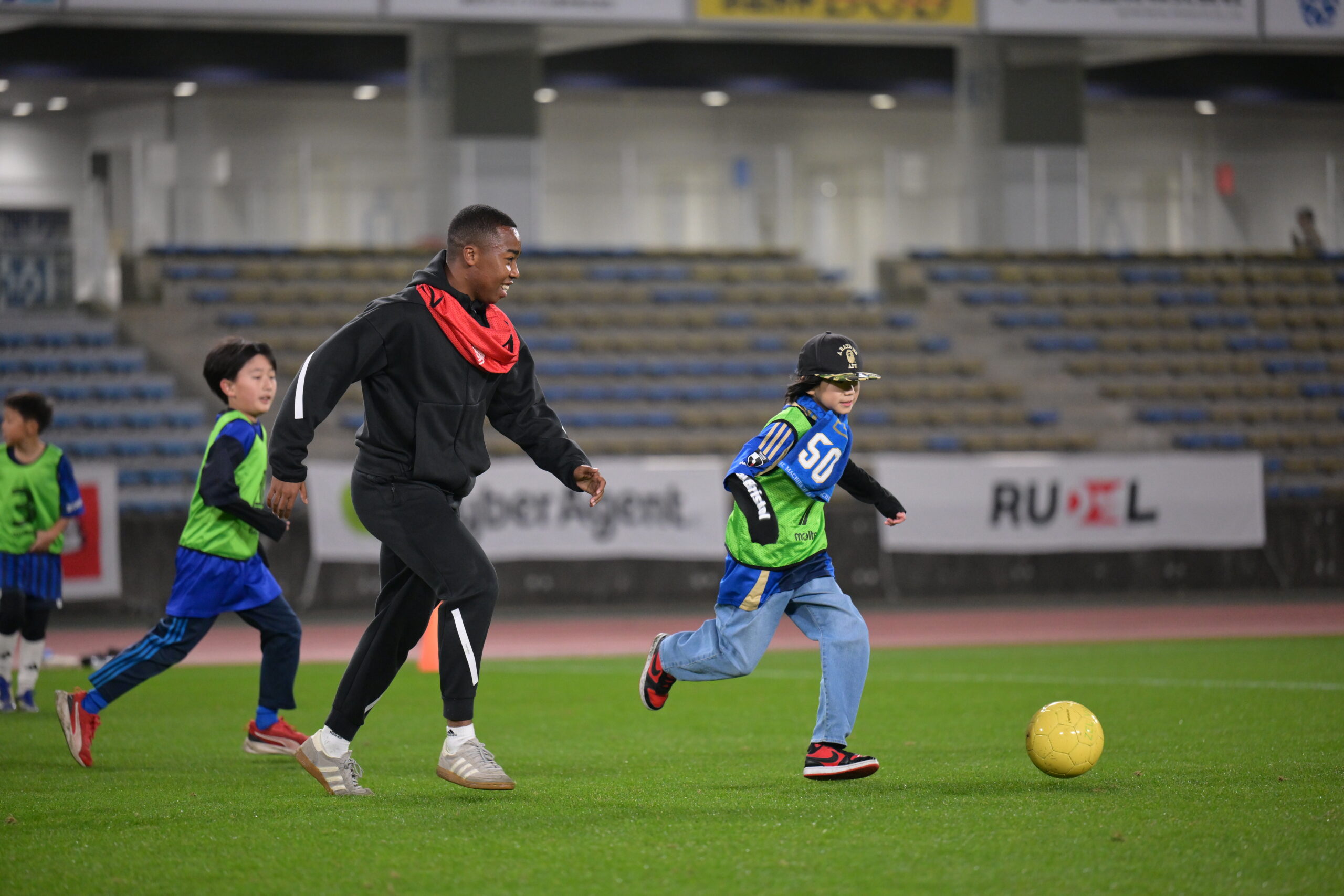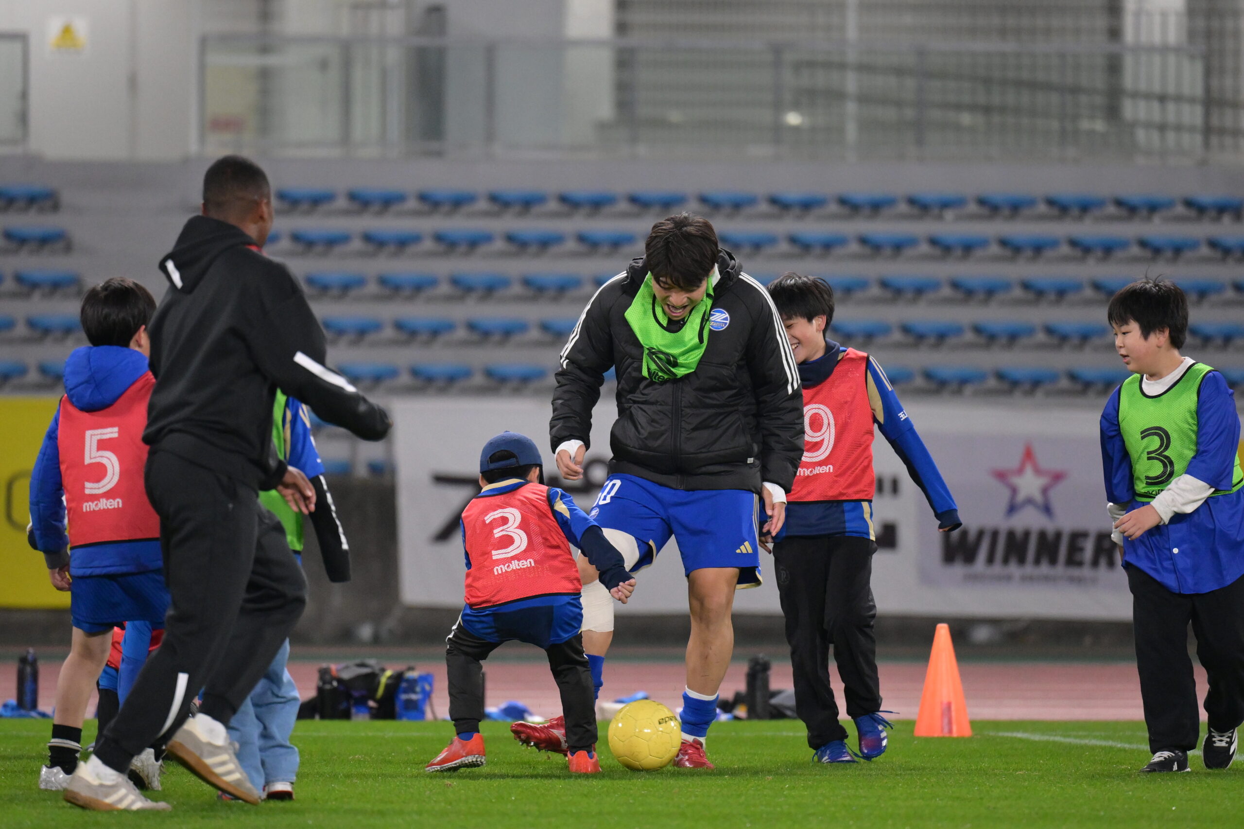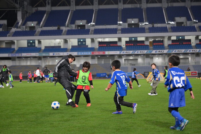 試合後のピッチの上で選手やスタッフのみんなと共にサッカーを楽しみましょう!