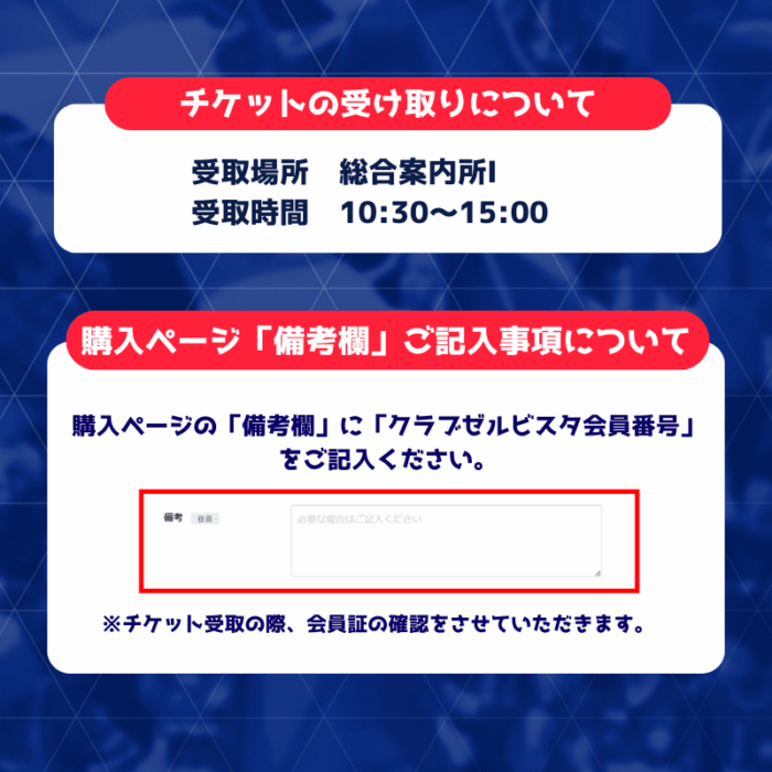※購入ページ備考欄に「クラブゼルビスタ会員番号」を必ずご記入ください。