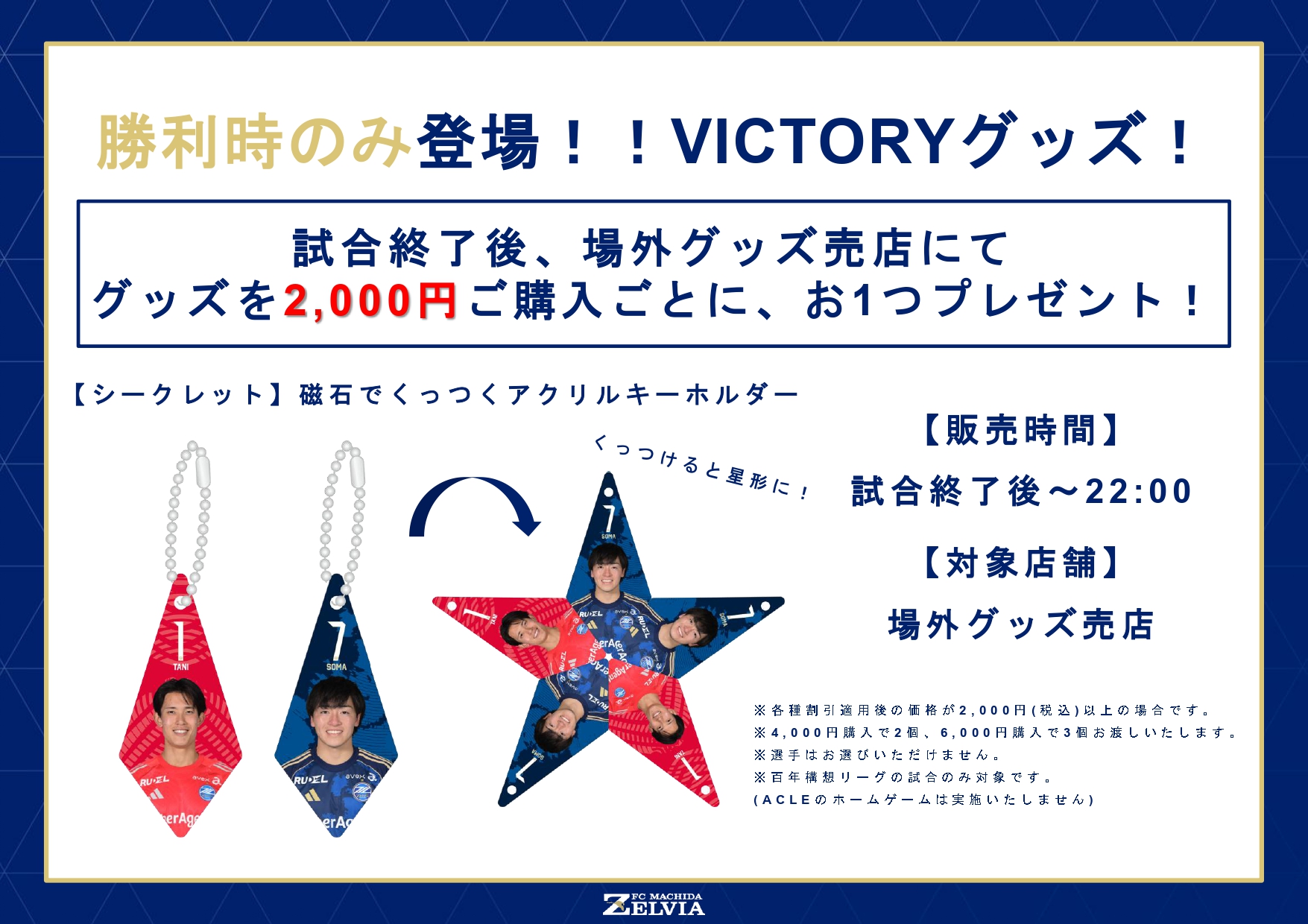 ※VICTORYグッズのプレゼントは、試合終了後のご購入のみ対象です。試合前にご購入されたレシートを持参いただいても、お渡しできません。