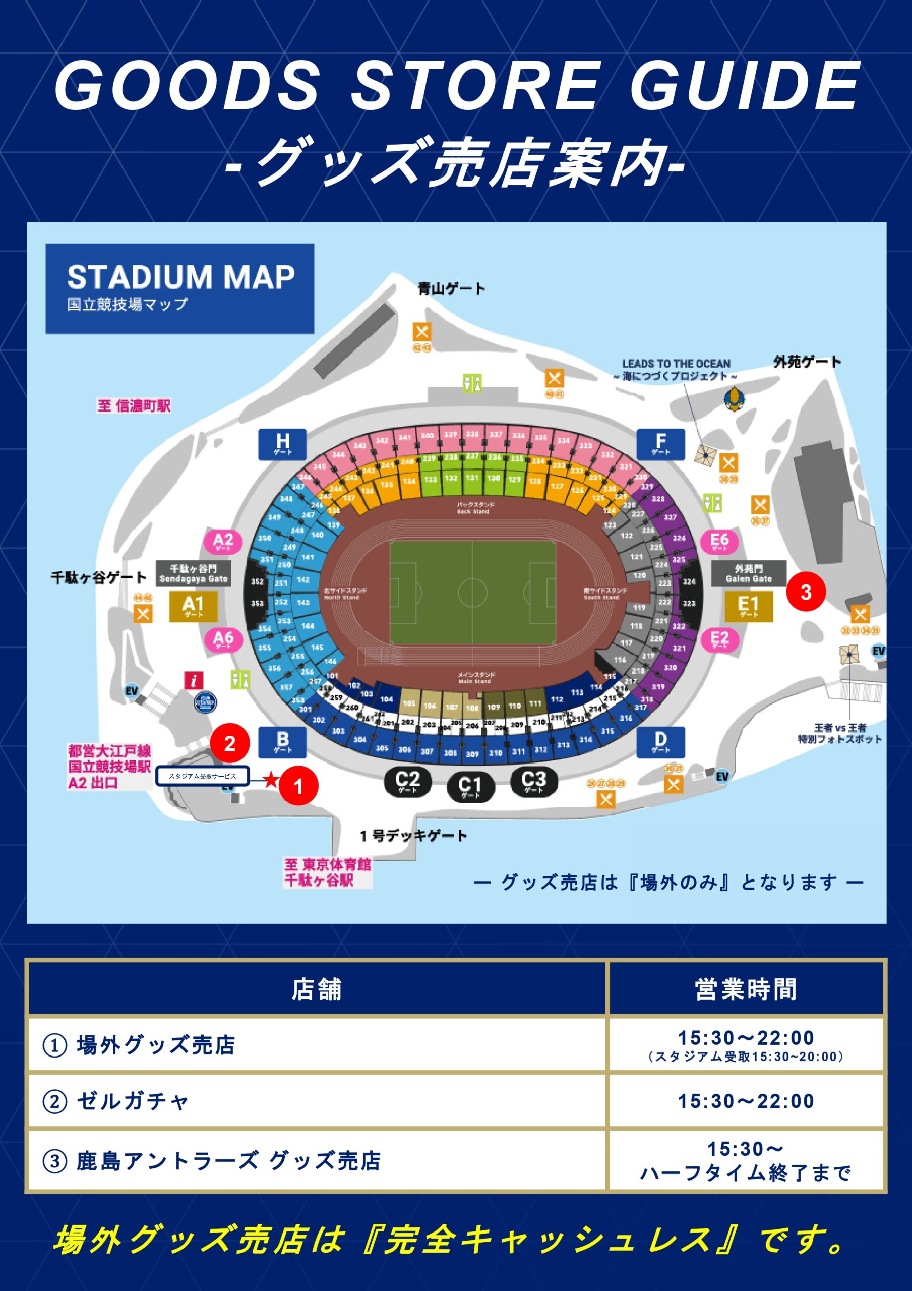 場外グッズ売店は、全店舗「完全キャッシュレス」となります。あらかじめキャッシュレス決済のご準備をお願いいたします。