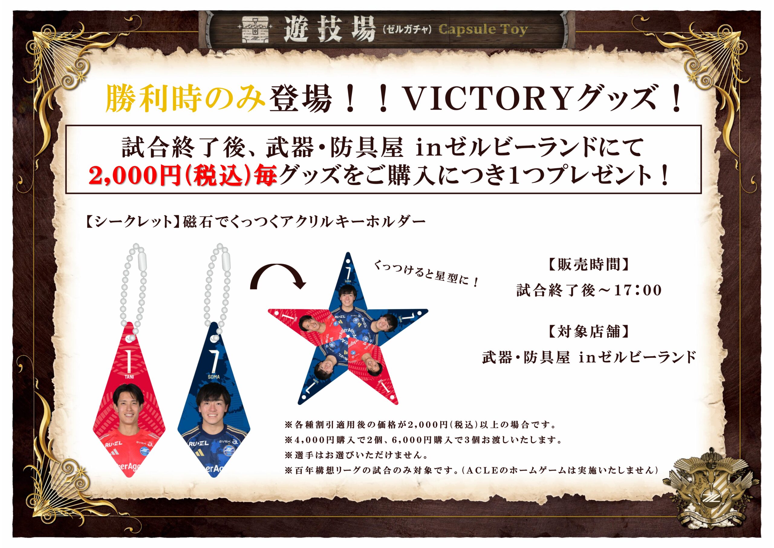 ※VICTORYグッズのプレゼントは、試合終了後のご購入のみ対象です。試合前にご購入されたレシートを持参いただいても、お渡しできません。