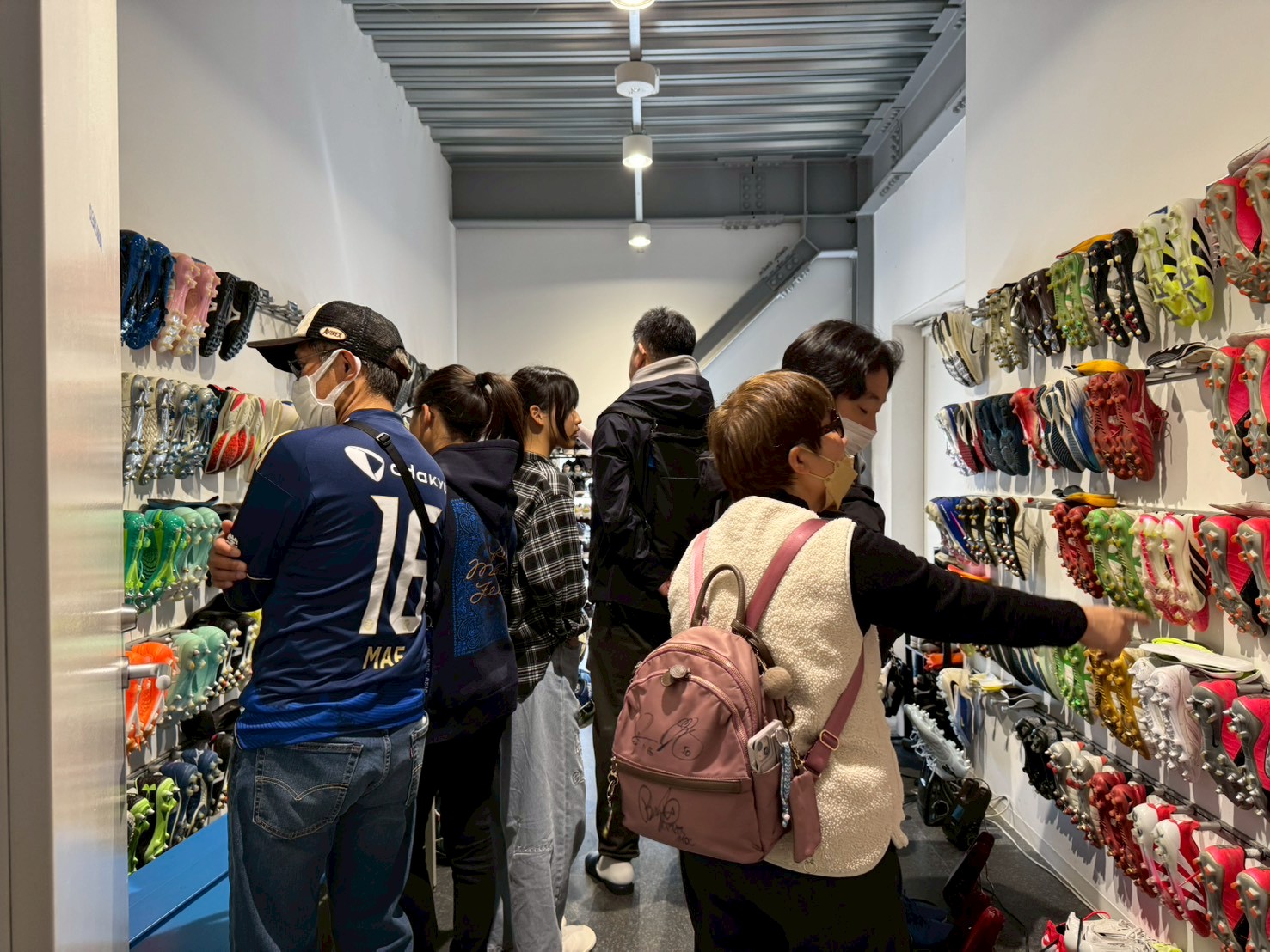 スパイクルームでは、実際に選手が使用しているスパイクやランニングシューズが保管されており、推し選手のスパイクを間近で観察できる貴重な経験となりました。