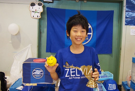1回100円空くじ無しのスピードくじで文房具やキーホルダーが当たり、1等はゼルビアTシャツで1等が当たるまで何度もチャレンジする子どももいました。