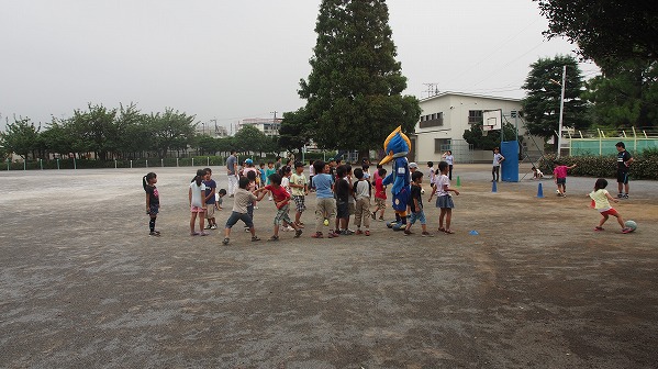 最後は、男の子たちとゼルビーの『サムライチーム』と女の子たちと星ホームタウン担当、齋藤ホームタウン担当の『なでしこチーム』で試合を行いました。結果は、女の子たちの活躍により、2-1で『なでしこチーム』が勝利しました。男の子たちも最後までボールを追いかけて頑張っていました。