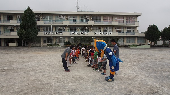 チームマスコットのゼルビーと星大輔ホームタウン担当、齋藤貴之ホームタウン担当が26日(火)、忠生第三小学校内にある『木曽学童保育クラブ』を訪問し、サッカー教室を行いました。