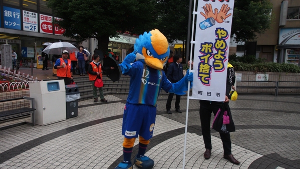 チームマスコットのゼルビーと星大輔ホームタウン担当が21日(火)、小田急町田駅の周辺で行われた『町田駅周辺ポイ捨て・路上喫煙禁止キャンペーン』に参加しました。