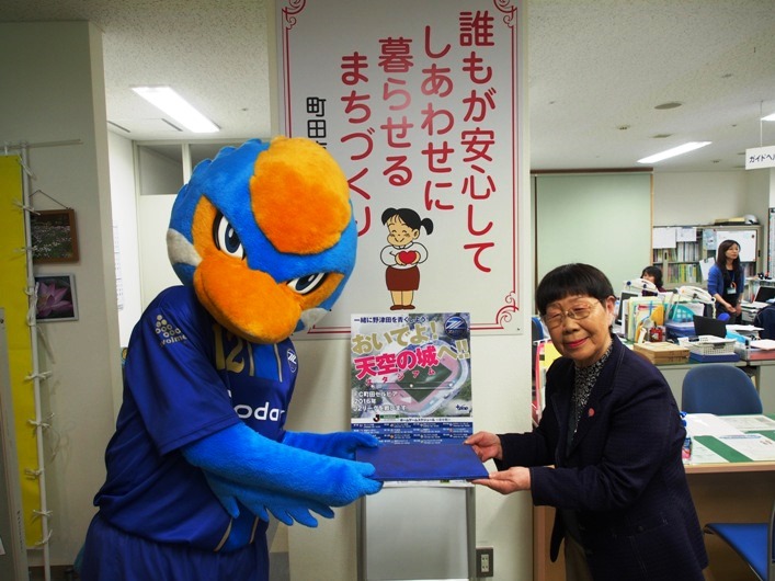 佐々木会長より、「誰もが安心して、幸せに暮らせるまちづくりを目指し、地域福祉の充実と明るい街づくりのために有効に活用させていただきます。ゼルビアもJ2定着を目指し頑張ってください」とお言葉をいただきました。