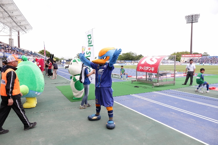 水戸のサポーターの皆さんに暖かく迎えられゼルビーは大満足でした。