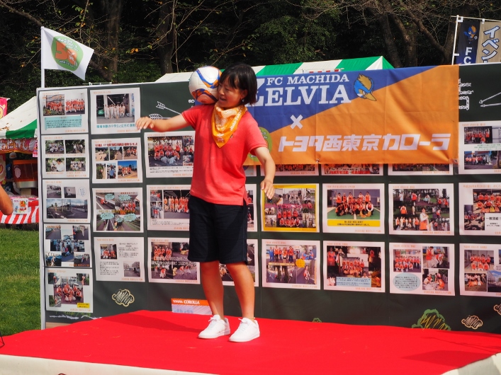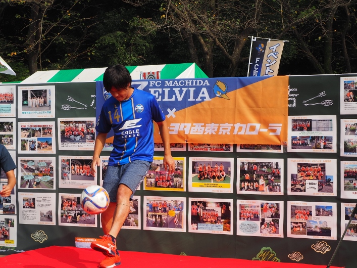 自己紹介の後には、プロならではの技の披露ということで、横山選手が得意のリフティングを披露し、華麗な技で会場を沸かせました。