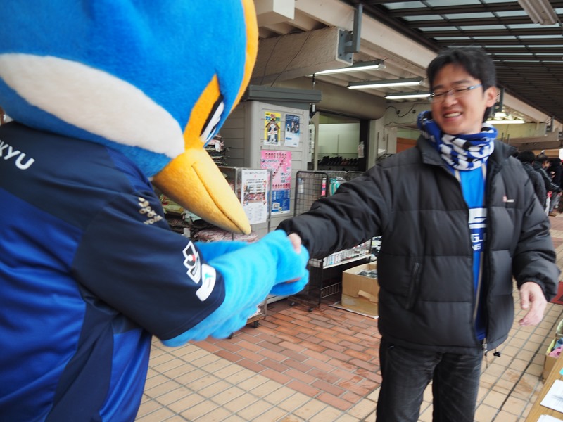 あいにくの雨の中でしたが、ゼルビーはサルビアンと一緒に記念写真や握手をして会場を盛り上げました。