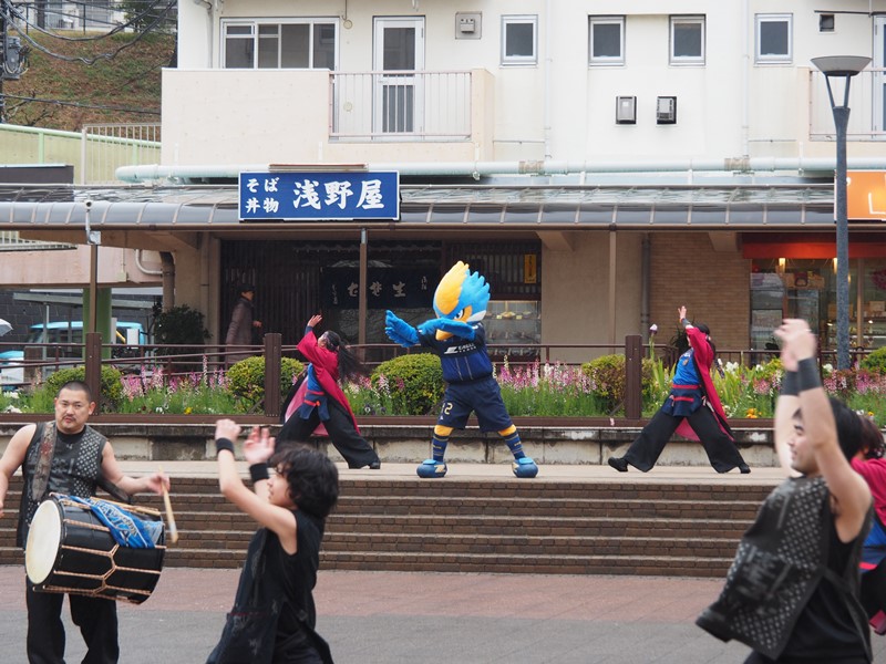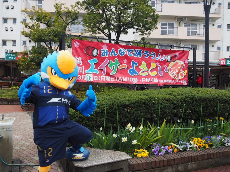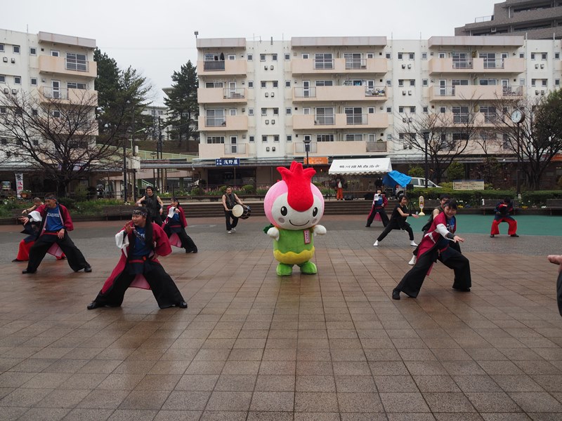 ゼルビーが26日(日)、鶴川団地センター名店街の太陽の広場で行われた『第15回鶴川エイサーよさこい祭』に参加しました。